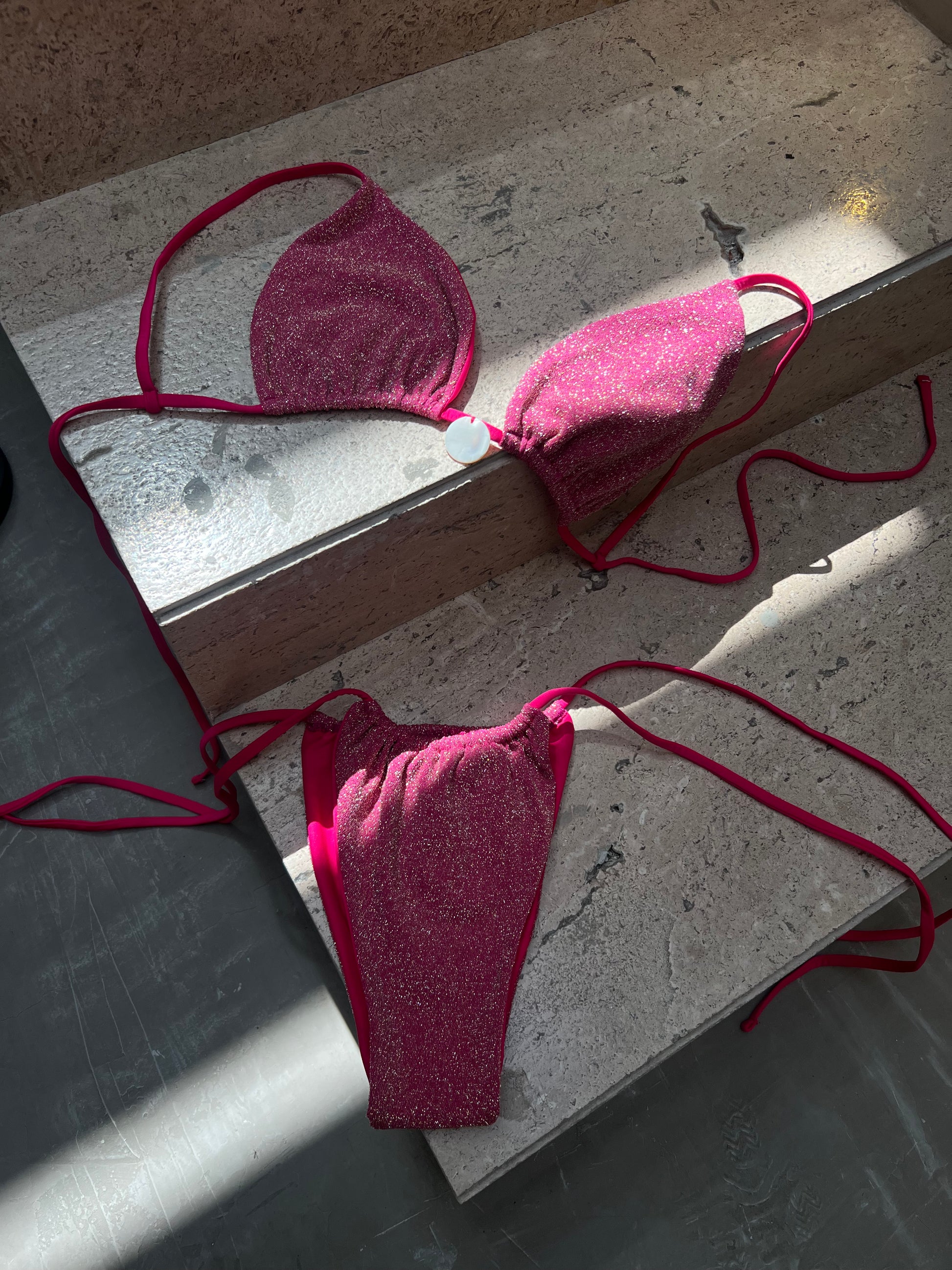 Un clásico inevitable en tu colección de playa. Este bikini de dos piezas está confeccionado en tela brillante que realza el tono de la piel y aporta un look moderno y confortable. Su diseño básico y cómodo es ideal.